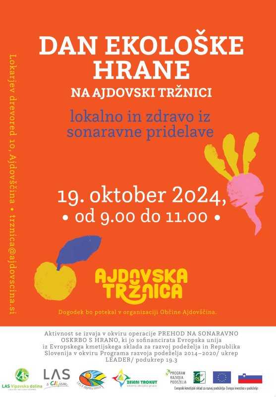 Ekološko in lokalno je idealno. S tem sloganom nas naša država spodbuja, da v svoje jedilnike vključujemo živila iz lokalne pridelave. Ekološko pridelana hrana je boljše kakovosti in bolj zdrava, zato je Občina Ajdovščina spodbujanju ekološke in lokalne pridelave namenila poseben projekt, predstavitvi te odlične hrane pa tudi poseben dan na Ajdovski tržnici.